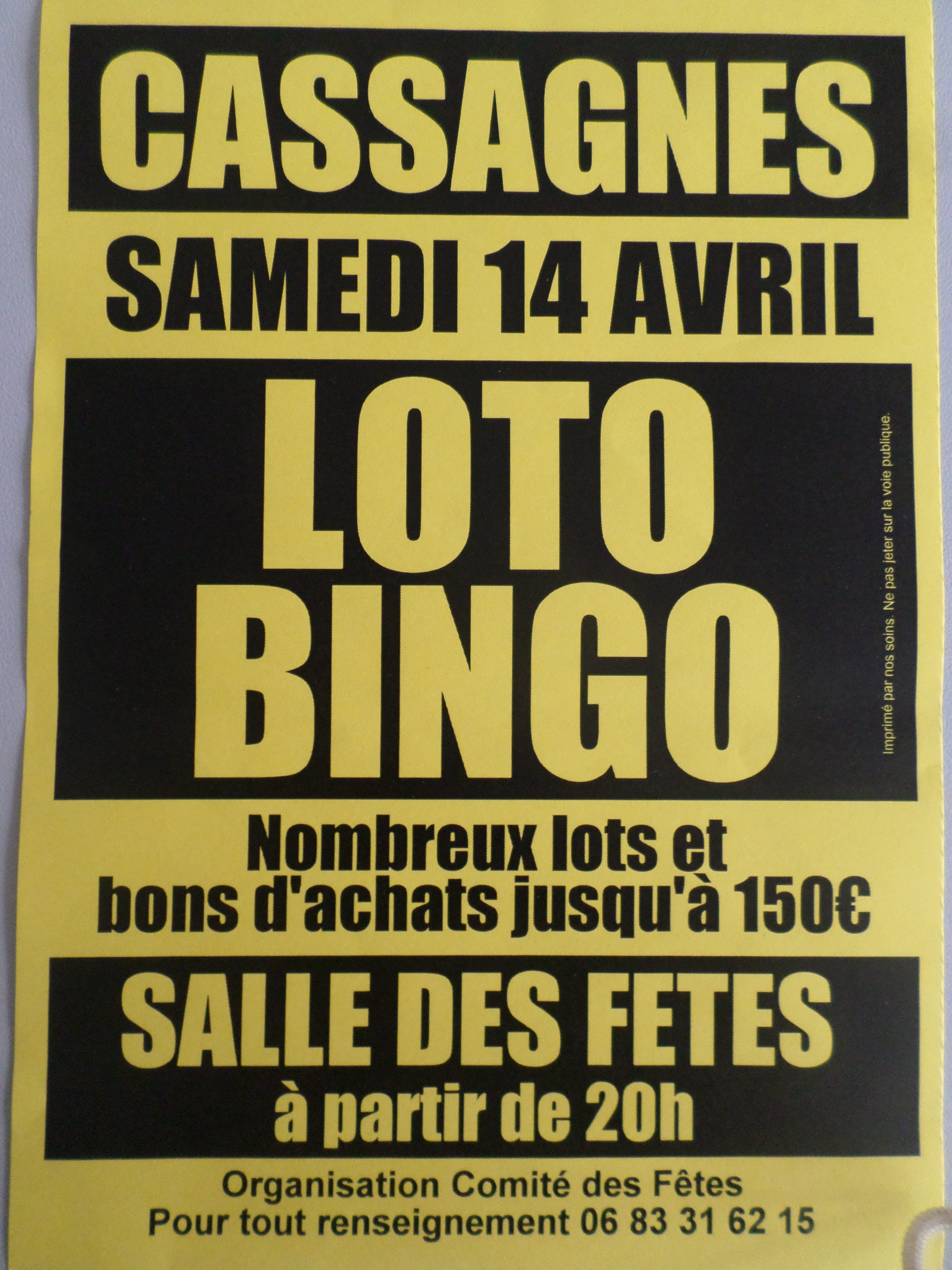 LOTO A CASSAGNES LE SAMEDI 14 AVRIL