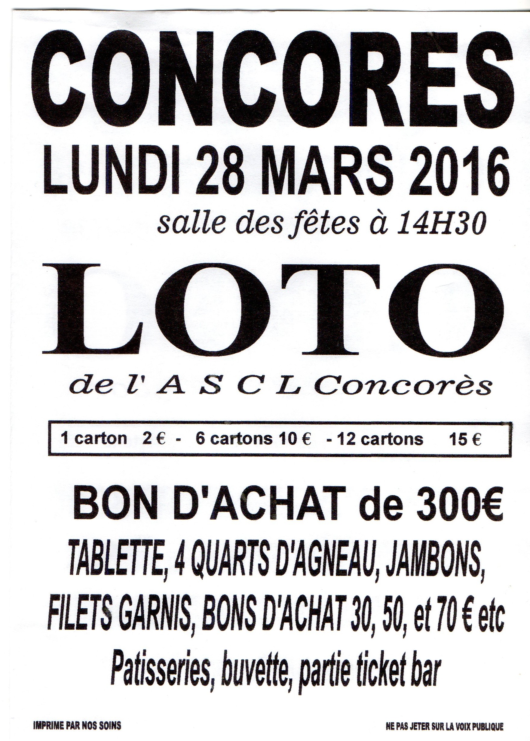Loto du lundi de pâques (28 mars 2016) Concorès salle polyvalente