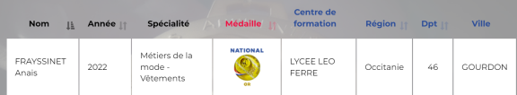 Par contre en recherchant sur le site des Meilleurs ouvriers de France en selectionant année 2020 et département 46 je trouve