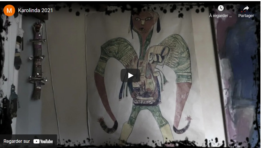 A la galerie d’art de Villefranche-du-Périgord, Nous souhaitons faire connaître l’univers de Karolinda. Elle s’exprime en s’inspirant de l’art brut, l’art pauvre.   Pour cela nous avons demandé à notre ami cinéaste Wlad, de faire une vidéo sur son univers pour exprimer cette force des sentiments et en même temps cette faiblesse causée par les doutes.     “En exprimant la force mais aussi la fragilité qui émanent de ses œuvres, elle questionne notre manière parfois d’embellir les apparences extérieures pour dissimuler des doutes ou des blessures intérieures.”