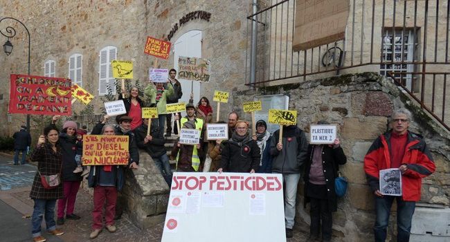 «Les Coquelicots» et la Marche mondiale pour le climat, l’autre manifestation prévue ce jour-là, ont convergé de la place de la Halle jusqu’au parvis de la sous-préfecture de Figeac où elles ont fusionné. «Cette matinée est sous le signe des couleurs et du bon sens. Nous avons le jaune des Gilets, le vert de la Marche pour le climat, le rouge des Coquelicots, et le bleu de la Préfecture», a salué avec humour l’une des militantes. Plus d’une cinquantaine de personnes ont participé à ce rassemblement pacifique. Prochain rassemblement le 5 janvier à Figeac.