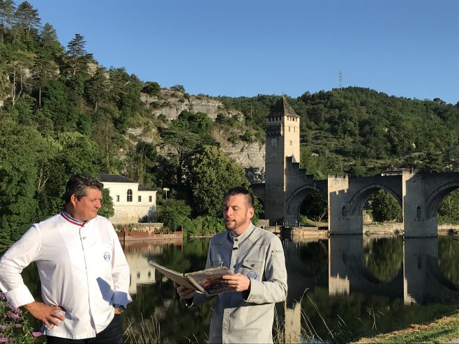 Le tournage a démarré aux aurores près du pont Valentré et ensuite les équipes ont sillonné la ville avant de se rendre chez Les Gourmandises de Lilu dans la rue Nationale face à la Halle. Jérôme Moulinou a présenté ses produits et façonné devant Norbert et Bruno une de ses spécialités.