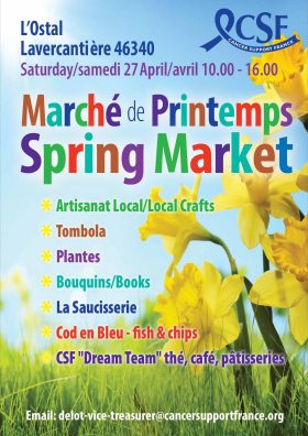 Aidez-nous à célébrer le printemps tout en soutenant l’association CSF (Cancer Support France) qui vient en aide aux personnes anglophones touchées par le cancer en France.