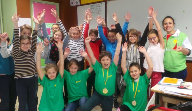 La classe de CM1/CM2 de Saint-Gabriel à Cahors en finale du concours national de mathématiques Pangea.