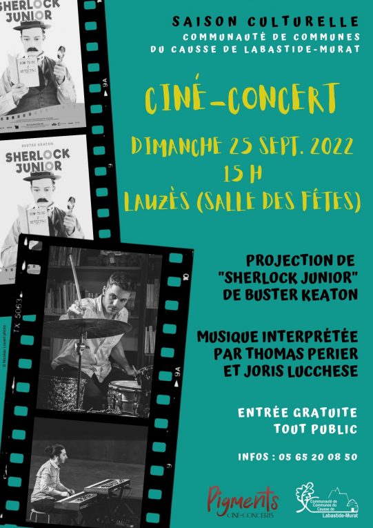 Ainsi, la CCCLM donne rendez-vous à tous, jeunes comme moins jeunes, le dimanche 25 septembre à 15 h à la salle des fêtes de Lauzès (46360) pour une mise en couleur musicale du film Sherlock Junior de Buster Keaton. Ce spectacle est accessible gratuitement pour le public.