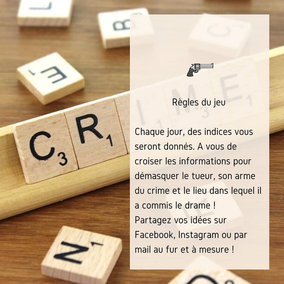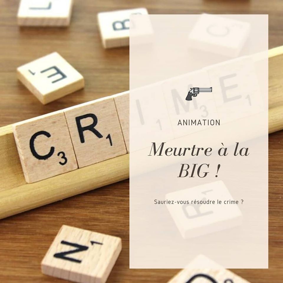 « Meurtre à la BIG » Publié le mardi, 7 juillet 2020mardi, 7 juillet 2020 par Bibliothèque Intercommunale Gourdon La Bibliothèque vous propose une nouvelle animation : « Meurtre à la BIG » Vous êtes les enquêteurs. Retrouvez un indice chaque jour de la semaine dévoilé sur Facebook et les Confins de la BIG, Instagram et le portail www.mediathequeccqb.net.
