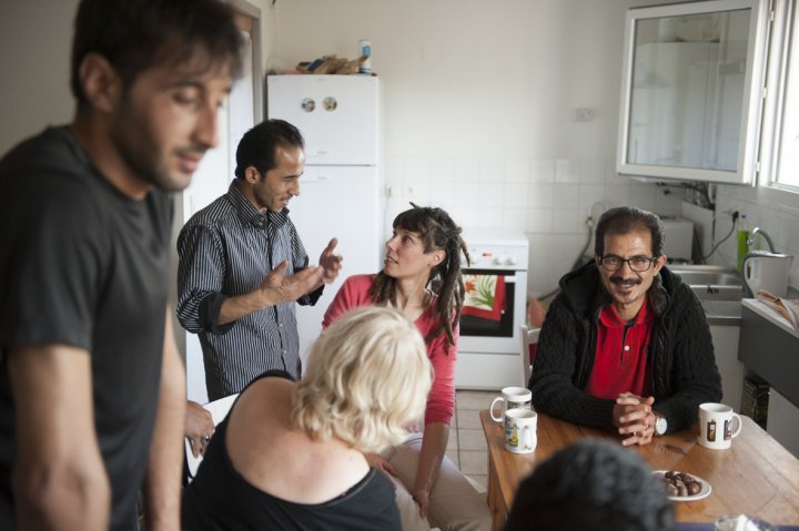Fine barbichette et lunettes posées sur le nez, Zabihllah, 26 ans, confirme : « Au début, on croyait que c’était des voisins qui venaient nous observer, un peu comme des « bêtes curieuses »… C’était un peu dur. » En repensant à la méprise, le jeune homme se marre.