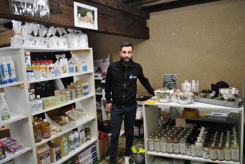 Guillaume Cassair, gérant depuis cinq ans de la SAS Modern Entretien, a ouvert en centre-ville de Figeac une boutique de vrac ménagers, à base de produits d’entretien et cosmétique naturels.