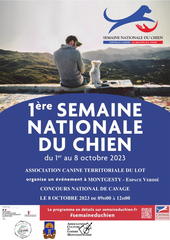 Dimanche 8 octobre 2023, dans le cadre de la Semaine nationale du Chien, l’Association Canine du Lot organise avec l’appui de la commune de Montgesty et de l’Association Culture et Loisirs Montgestycoise un concours national de cavage sur le terrain communal « Esapce Verdié » (accès Route des Combes).