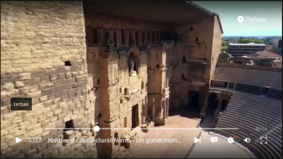 Tout est extraordinaire Montserrat Caballé bien sur, mais aussi l’imposant Théâtre Antique d’Orange et le vent, un mistral déchainé qui fait de cet opéra de Bellini un spectacle fantastique, la voix sublime de Monterrat s’élève inébranlable au dessus de la tourmente.