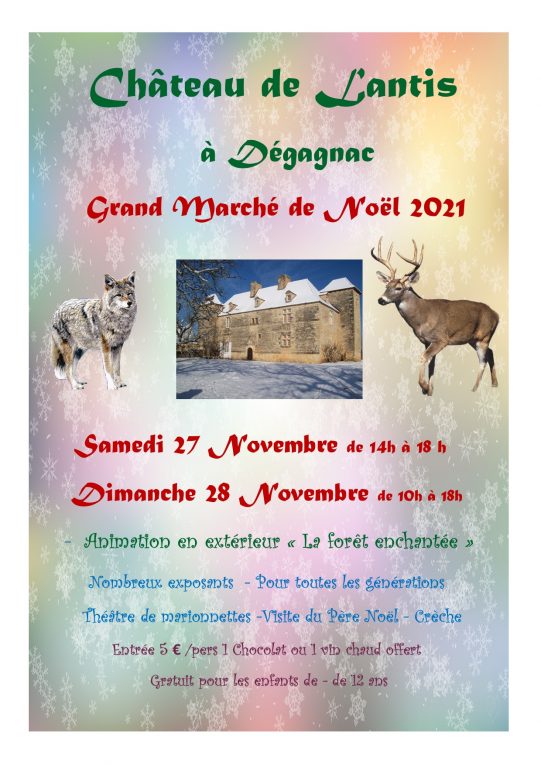 Venez découvrir la féérie des Noëlies du château de Lantis à Dégagnac le samedi 27 novembre de 14h à 18 heures et dimanche de 10 h à 18 heures .