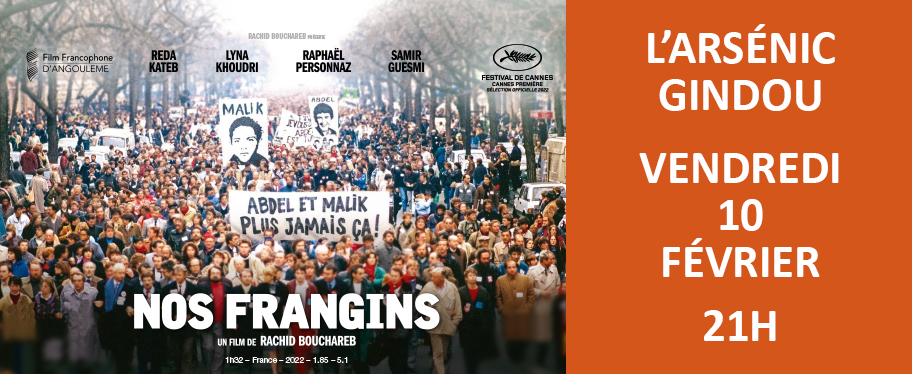 Pour sa prochaine projection mensuelle à L’Arsénic, le vendredi 10 février à 21h, Gindou Cinéma a choisi le film de Rachid Bouchareb qui est sorti en salles le 7 décembre 2022 : « Nos frangins » de Rachid Bouchareb, avec Reda Kateb, Lyna Khoudri, Raphaël Personnaz et Samir Guesmi.