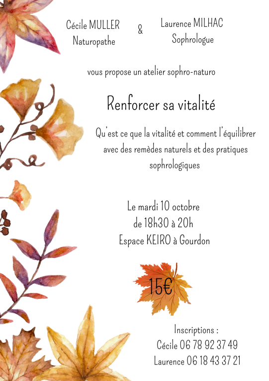 Nous vous invitons à nos ateliers Sophro-Naturo  » Renforcer sa vitalité » .