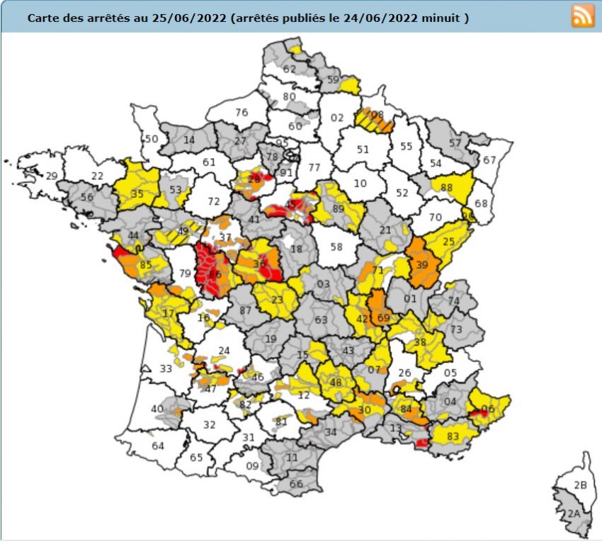 Depuis ce matin, samedi 25 Juin 2022 à 8h  et jusqu’au 31 Octobre 2022, (sauf arrêté préfectoral anticipant la levée de l’interdiction) les dernières mesures préfectorales prévoient, selon, le niveau de gravité (Alerte, Alerte renforcée, Crise) , qu’à l’exception des arrosages réalisés par un dispositif tenu à la main, les prélèvement pour l’arrosage des jardins (agréments et potagers), des pelouses, des espaces verts et des terrains de sport, opérés dans les ressources en situation d’alerte, alerte renforcée ou crise,… sont soumis à des horaires d’interdiction