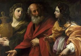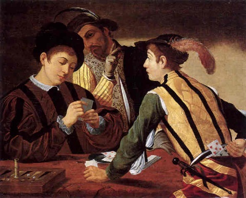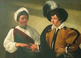 Le peintre italien, Michelangelo Merisi da Caravaggio dit Le Caravage (1571-1610), est reconnu comme un « artiste révolutionnaire ». Sa vie turbulente, dissolue, souvent empreinte de scandales dus à son caractère violent (il fera un séjour en prison pour meurtre) lui font fréquenter les tavernes et les bas-fonds des rues la nuit. Beaucoup de ses œuvres s’inspirent d’ailleurs de ces gens du peuple qu’il côtoie. Les personnages qu’il peint dans ses scènes religieuses, mythologiques ou profanes, sont traitées sur le plan pictural avec le même réalisme. Ainsi « La diseuse de bonne aventure » (1594) et « St-Baptiste » (1597-1598), « Bacchus » (1592-1593) et « La mort de la vierge » (1605-1606), « Les musiciens » (1595-1596) et « Ecce Homo » (vers 1606)… sont placés au même rang. C’est la personne qu’il peint et non ce qu’il représente socialement parlant.