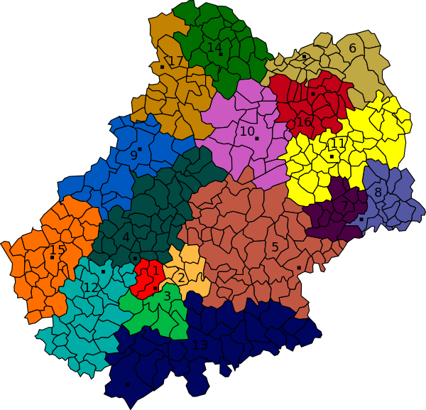 Cahors-1, 2- Cahors-2, 3- Cahors-3, 4- Causse et Bouriane, 5- Causse et Vallées, 6- Cère et Ségala, 7- Figeac-1, 8- Figeac-2, 9- Gourdon, 10- Gramat, 11- Lacapelle-Marival, 12- Luzech, 13- Marches du Sud-Quercy, 14- Martel, 15- Puy-l’Évêque, 16- Saint-Céré, 17- Souillac