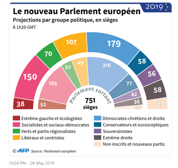 | Liste | Voix | % des exprimés | Sièges après sortie du Royaume-Uni | Sièges avant sortie du Royaume-Uni |