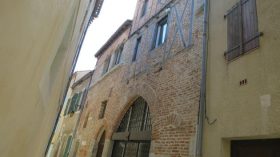 Au n° 156, une ancienne arcade qui devait être l’ouverture d’une boutique est datée du XIIIe siècle, remaniée au XVe siècle, avec des solives soutenues par des esseliers. Une architecture d’avant les Guerres de Cent ans qu’on peut retrouver Rue Dorade, avec une liaison en demi queue d’aronde. Entre les maisons, un pare-feu en dur avec 6 encorbellements qui vont supporter la sablière. Au départ de la rue St Urcisse, au-dessus du restaurant, la façade présente des croix de St André du XV/XVIe siècle et des fenêtres en bois, sans peinture. L’escalier, situé à côté, est remanié XVIIe dans un style toulousain avec balustrade en bois tourné.