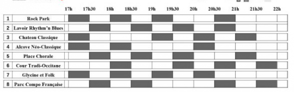 8 groupes de musiciens se produiront sur 8 sites différents du village.