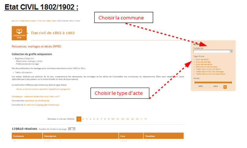 Si l’on trouve une date et un lieu, il faut ensuite se reporter aux archives départementales concernées pour vérifier et trouver l’acte authentique.
