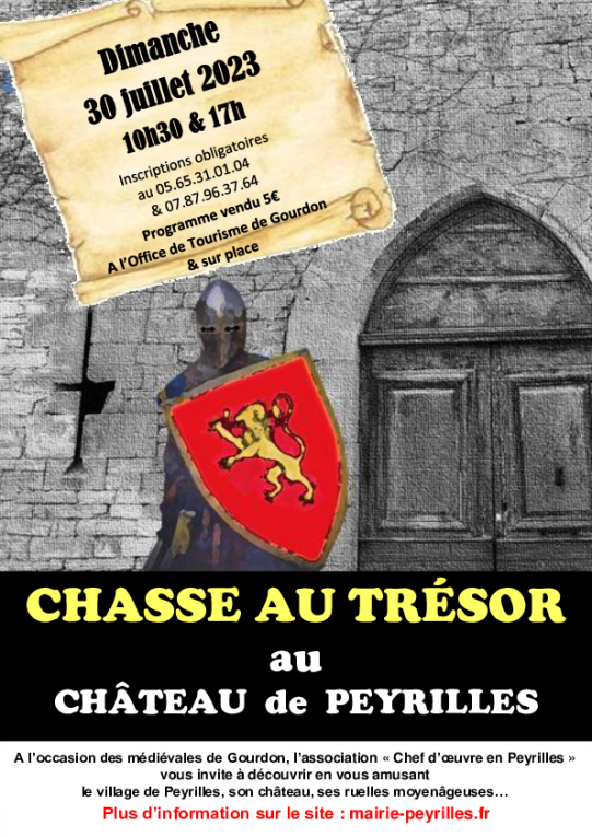 Dans le cadre des médiévales de Gourdon, une chasse au trésor est organisée le 30 juillet 2023 à PEYRILLES.
