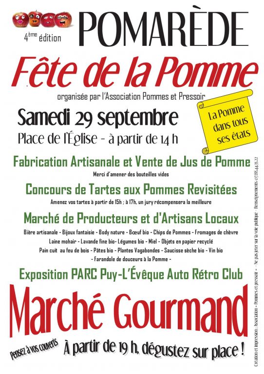 POMARÈDE : Fête de la Pomme, 4ème édition Publié le vendredi, 14 septembre 2018vendredi, 14 septembre 2018 par Comité des fêtes de Pomarède Samedi 29 septembre