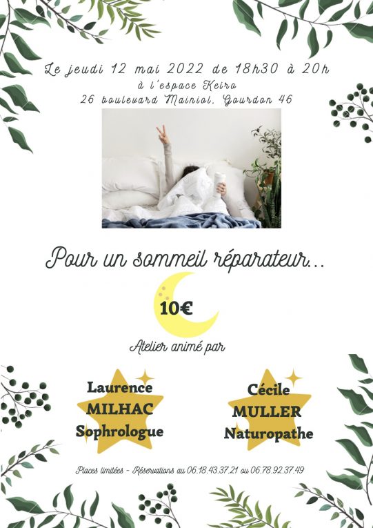 Nous explorerons ensemble le fonctionnement et les entraves de l’endormissement, côté naturopathie avec Cécile MULLER (naturopathe) et les pratiques concrètes pour se reconnecter à soi même et favoriser un sommeil réparateur grâce à la sophrologie avec Laurence MILHAC (sophrologue).