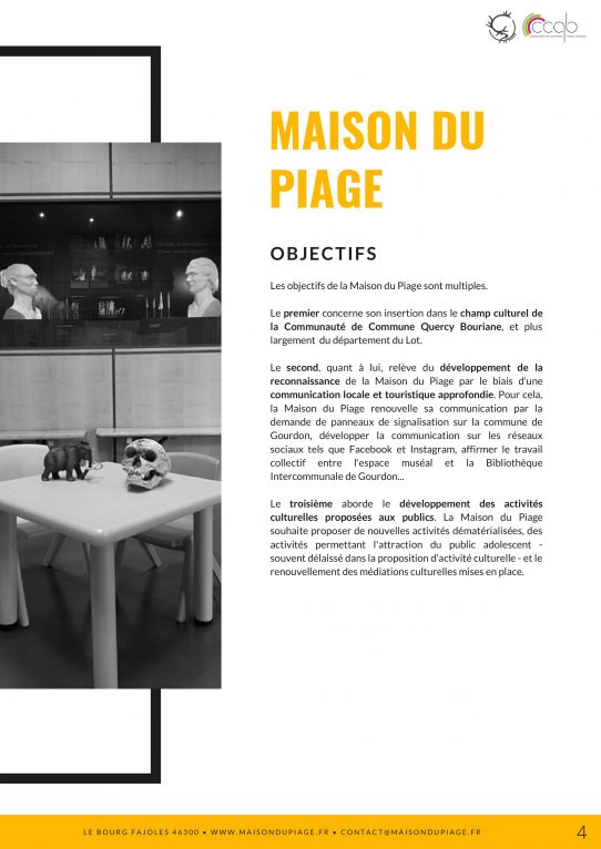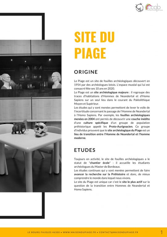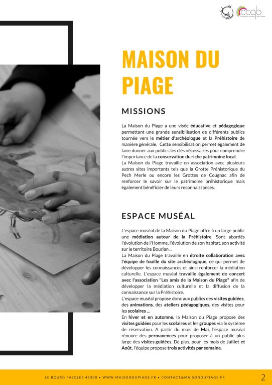 Pour plus d’information sur le site internet www.maisondupiage.fr