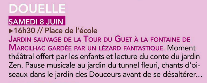 Les jardins paysages, à douelle samedi 8 juin 16h30 place de l’école