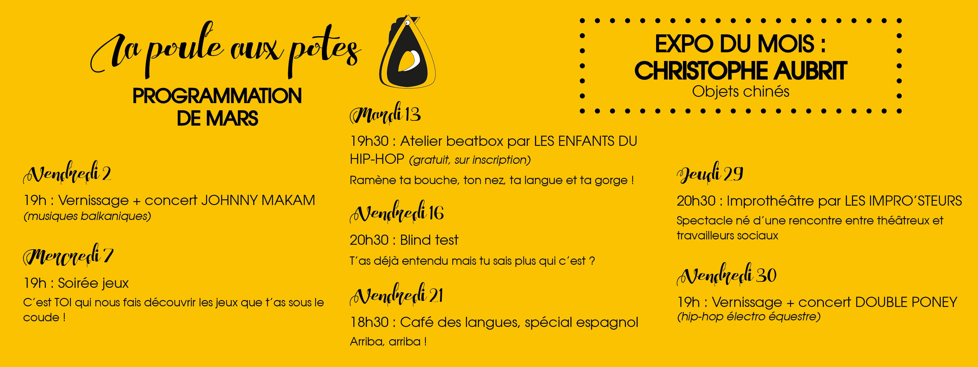 Une réflexion sur “ Programme de mars de La Poule aux Potes à Cahors ”