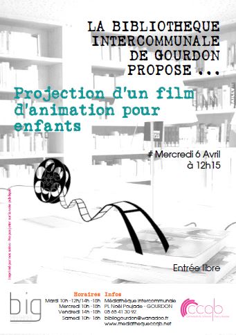 Projection d’un film pour enfant à la BIG Publié le vendredi, 1 avril 2016 par Bibliothèque Intercommunale Gourdon Mercredi 6 avril à 12h15