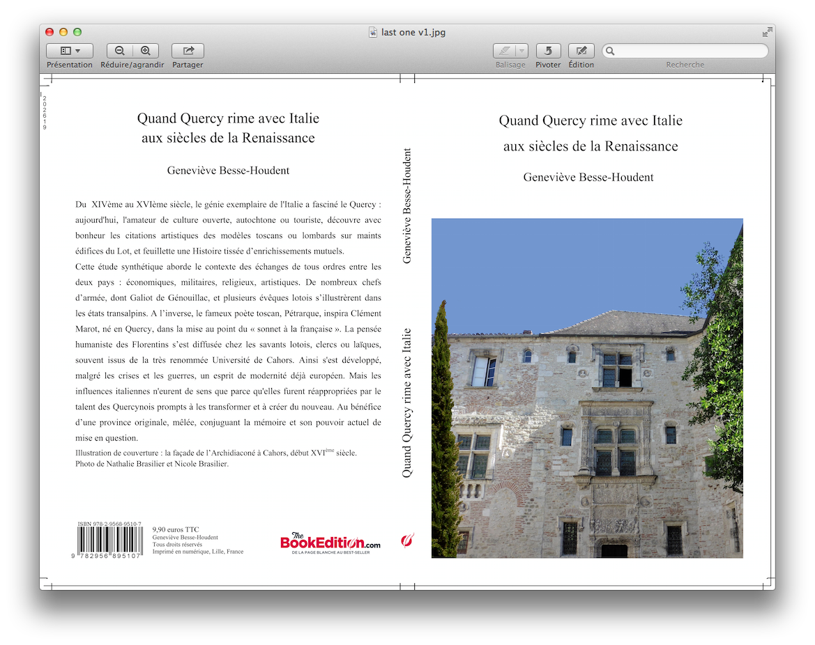sur Internet, site THEBOOKEDITION, en tapant le titre du livre ou le nom Geneviève Besse-Houdent, OU L’ACHETER A LA MAISON DE LA PRESSE DE PRAYSSAC et A LA LIBRAIRIE CALLIGRAMME A CAHORS.