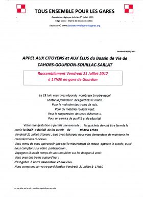 Rassemblement Gare de Gourdon le 21 Juillet 2017 à 17h30