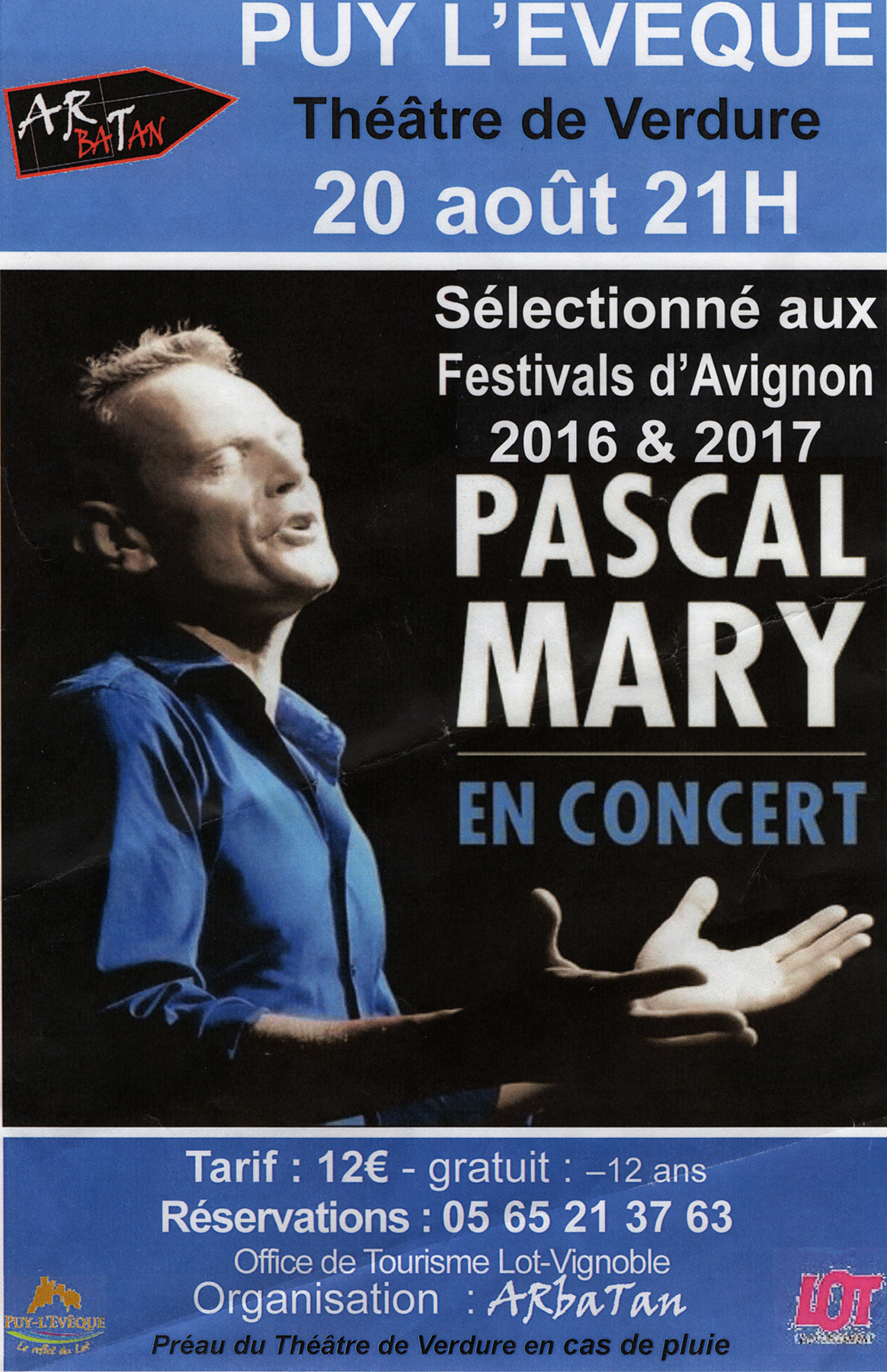 .Pascal Mary se produit au Théâtre de Verdure de Puy-L’Évêque le Dimanche 20 Août, à 21 h.