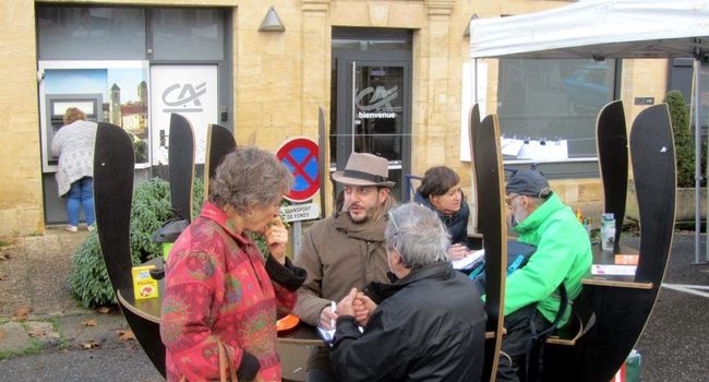 Samedi 25 novembre les habitants de Gourdon pouvaient discuter ensemble, à côté du marché dans une nacelle sur l’avenir du bourg.