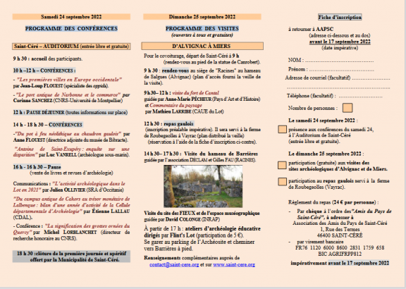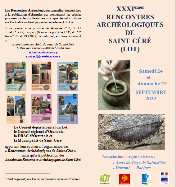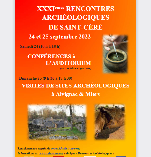 Rencontres archéologiques de St Céré Publié le jeudi, 8 septembre 2022jeudi, 8 septembre 2022 par jevouslis