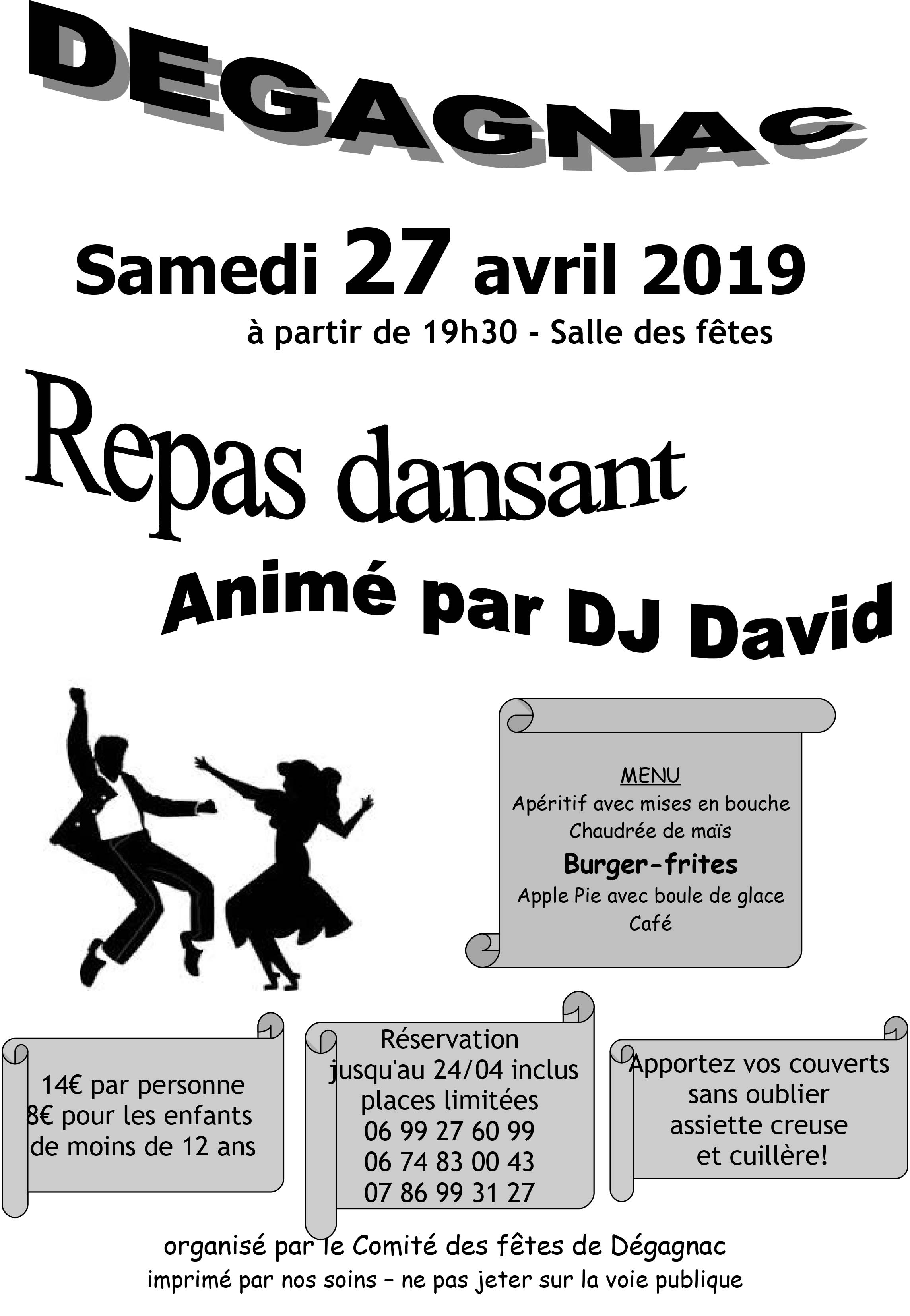 Repas dansant à Dégagnac le 27 avril Publié le vendredi, 26 avril 2019vendredi, 26 avril 2019 par Comité des fêtes de Dégagnac .