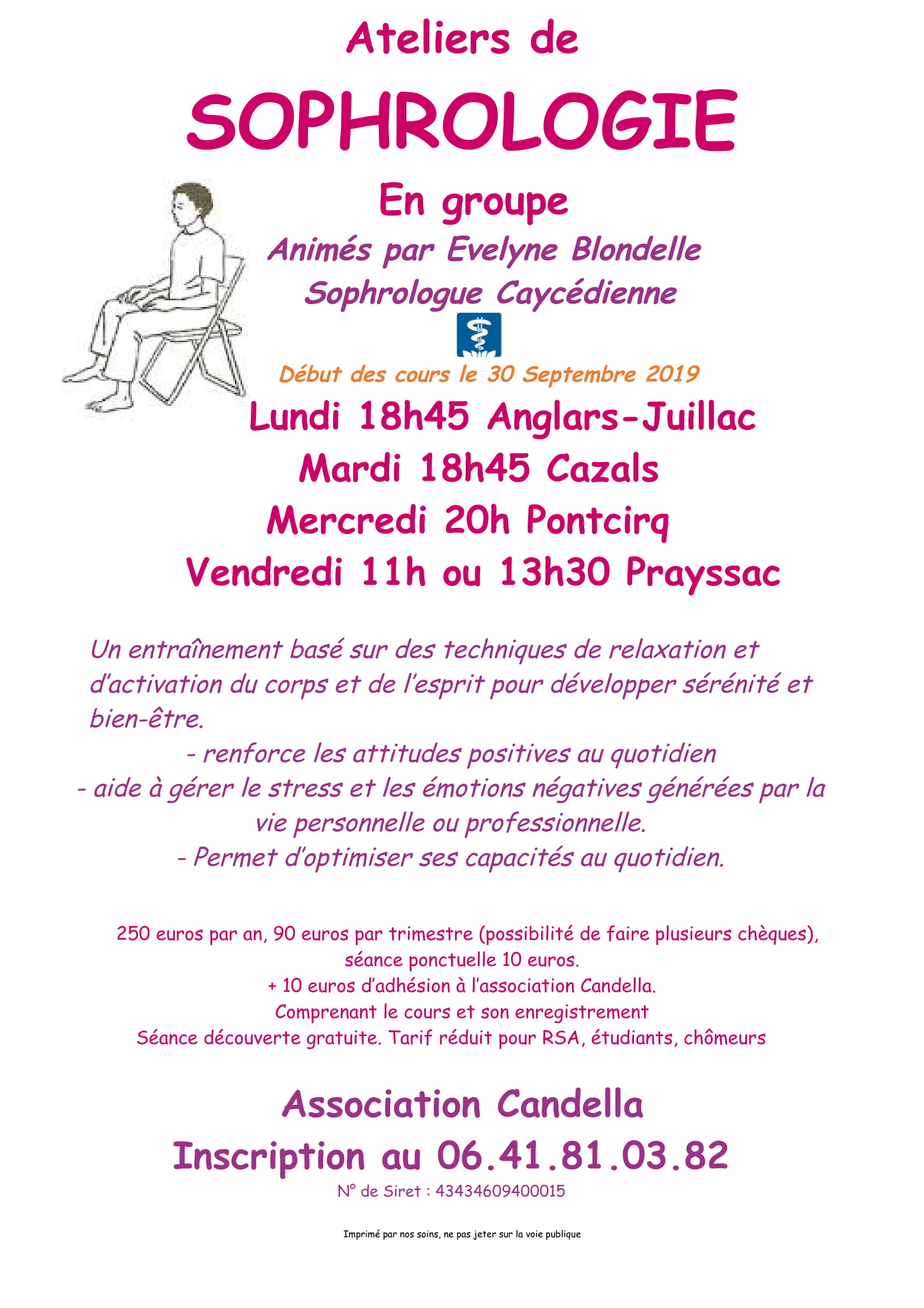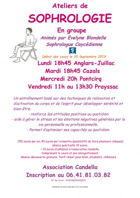 Reprise des ateliers de Sophrologie Publié le jeudi, 26 septembre 2019lundi, 30 septembre 2019 par Evelyne Blondelle . Bien-être et sérénité Un moment pour soi, avec soi
