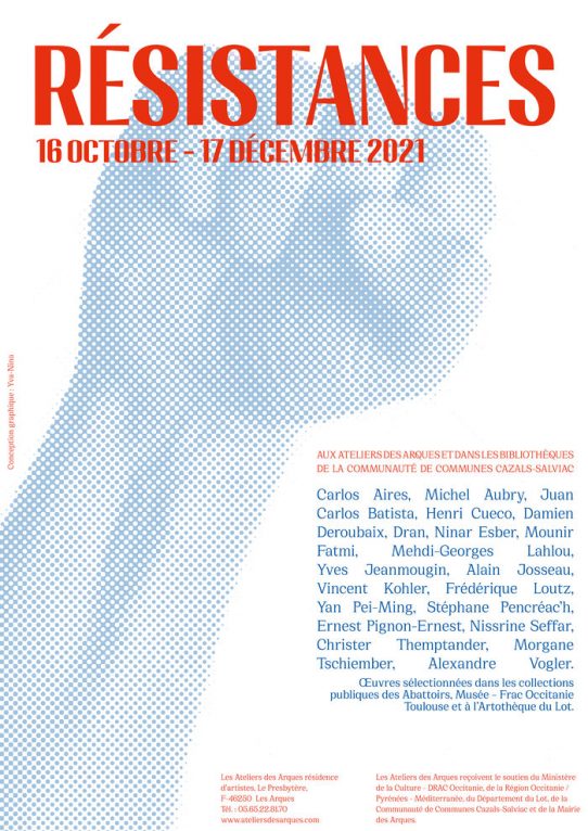 ont le plaisir de vous inviter au vernissage de l’exposition Résistances JEUDI 21 OCTOBRE A 18H00 aux Ateliers des Arques