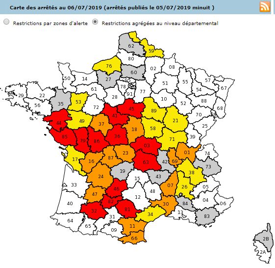 Plus de trente départements métropolitains sont concernés ce samedi par des restrictions d’eau. C’est le cas de 8 départements de notre région, dont 4 ont même atteint le niveau de crise, niveau maximal de restrictions sur une partie de leur territoire.