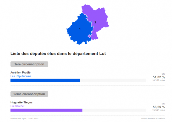 Dans ce département pourtant réputé de gauche et du centre (62 % aux Présidentielles) il a réussi à convaincre 6 400 électeurs de plus qu’au 1er tour, notamment en zones rurales. Le faible taux de suffrages exprimés (45,02%) a également joué en faveur du candidat LR: en 2012 il avait été battu par Dominique Orliac en totalisant 17 342 voix, soit 40% des bulletins exprimés; cette fois il l’emporte avec 16 358 voix, soit 51,32% des exprimés.