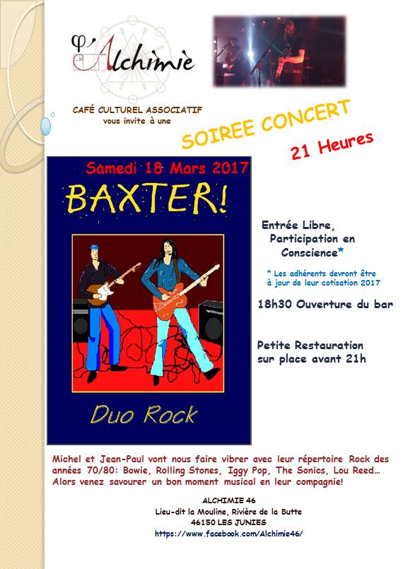 Concert du duo BAXTER au café culturel l’Alchimie des JUNIES