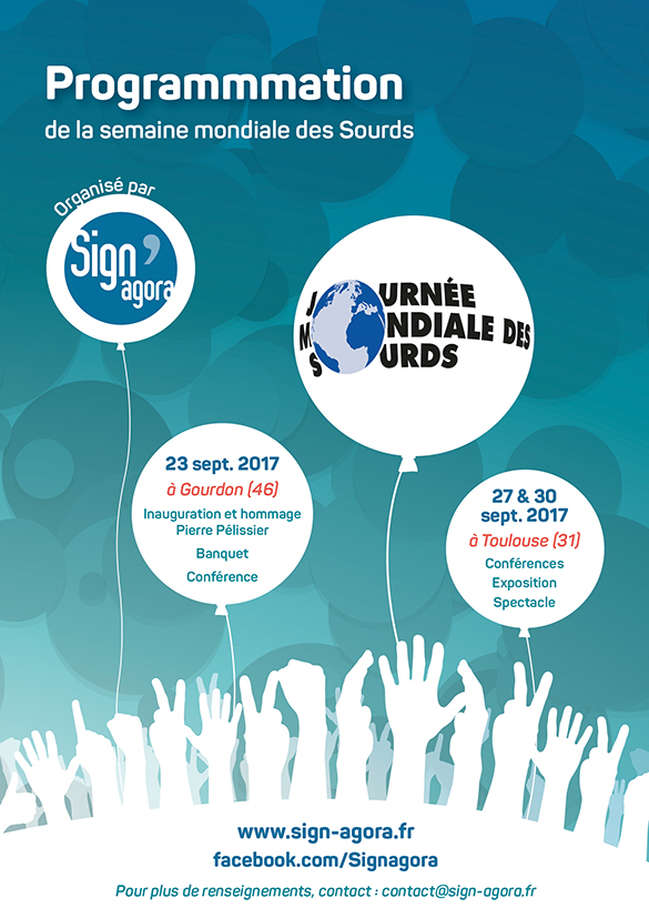 « La Journée Mondiale des Sourds (JMS) est une occasion pour sensibiliser le public sur le monde de la surdité, pour mettre en lumière les difficultés rencontrées quotidiennement par les personnes sourdes et malentendantes, et pour informer des solutions possibles et adaptations réussies. Cette visibilité leur permet ainsi d’exprimer leur volonté d’intégration dans la vie sociale et de revendiquer leur droit d’égalité avec tout autre citoyen. Cette journée est reconnue officiellement par l’ONU en 1959 »