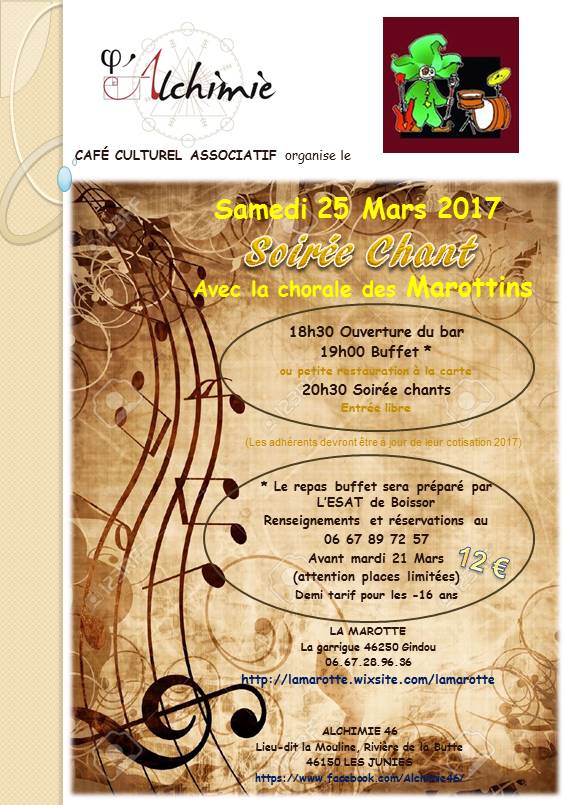 Soirée repas + chorale au café culturel l’Alchimie des JUNIES