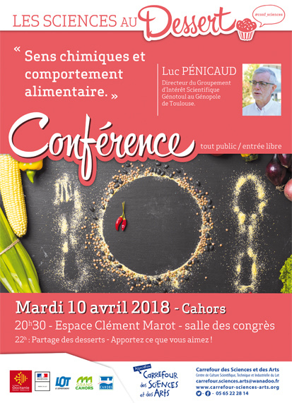 Sens chimiques et comportement alimentaire Publié le dimanche, 8 avril 2018 par jevouslis Conférence : Sens chimiques et comportement alimentaire par Luc Pénicaud (mardi 10 avril 2018, Cahors)