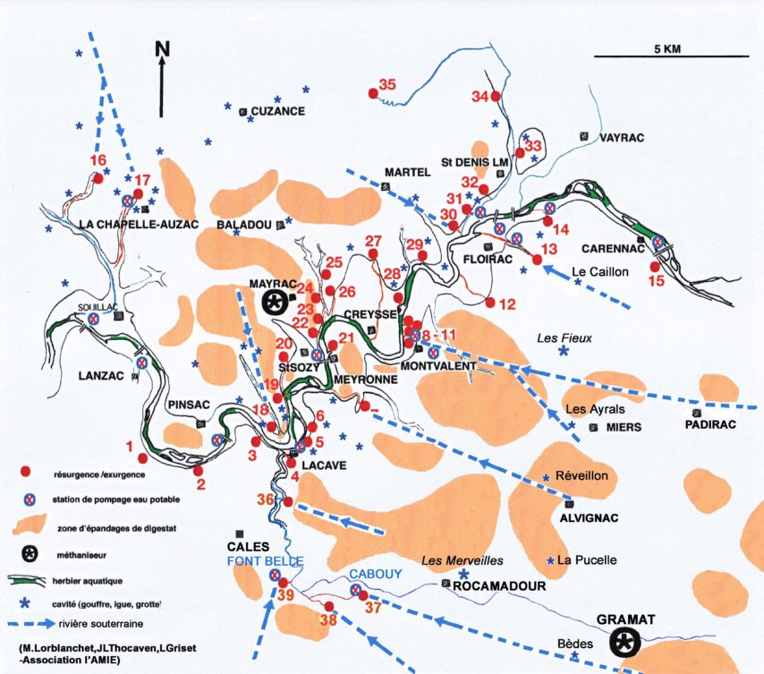 Les risques de pollution de notre région karstique sont immenses : une opposition citoyenne locale s’organise. Des spéléologues, hydrogéologues et géologues se sont déjà exprimés dans des conférences (à Gramat, Livernon, Cahors) et dans des articles dans les journaux régionaux (notamment dans « la Vie Quercynoise ») des groupements de citoyens se sont dressés contre ces épandages en milieu karstique (tels le GADEL, groupement des associations de défense de l’environnement du Lot), le Collectif de Gramat, l’association l’AMIE à Montvalent (Alerte Méthanisation Industrielle-Environnement).