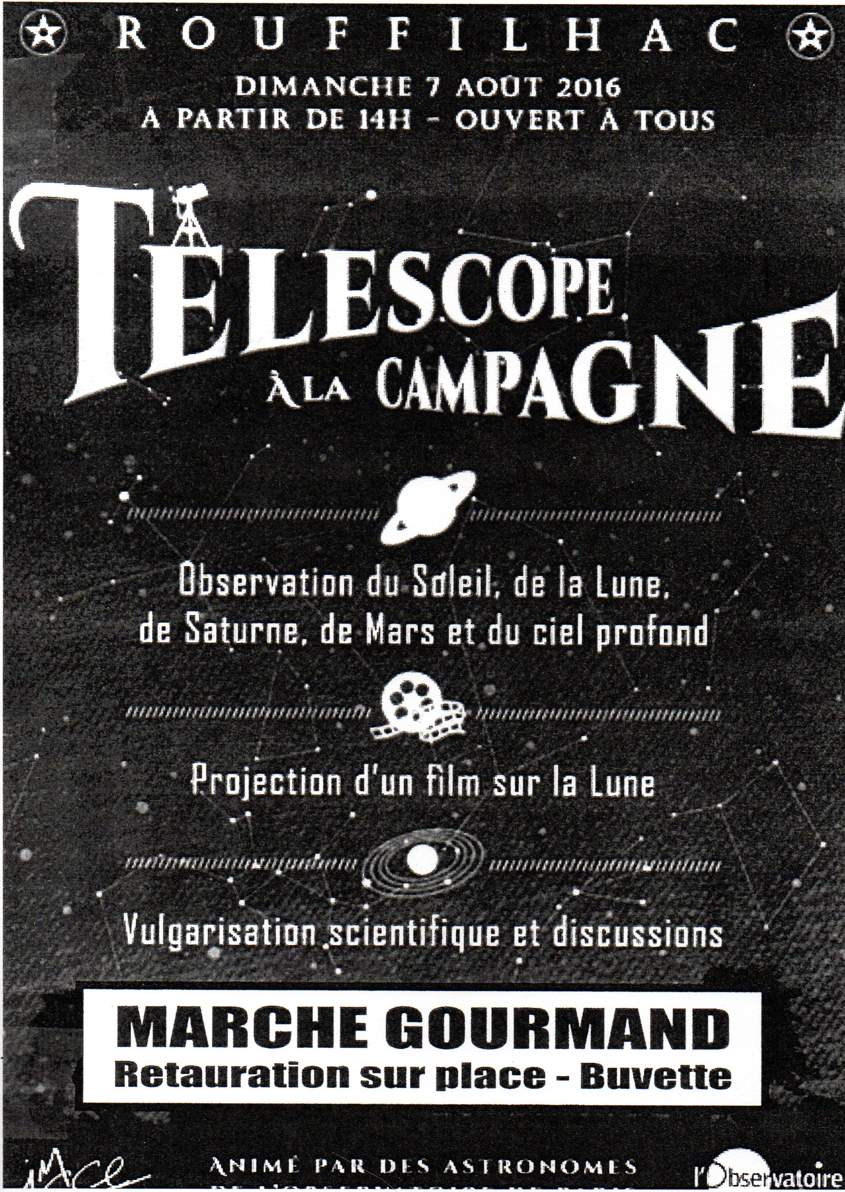 Demain dimanche 7 août dès 14h nous vous proposons films, conférences et observation du ciel. Le tout animé par des astronomes de l’observatoire de PARIS.