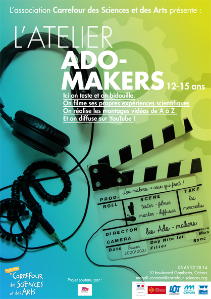 La science se partage. Les jeunes testent des expériences, les filment et ensuite réalisent eux-mêmes des vidéos ou des tutos qu’ils partagent sur leur chaîne YouTube (chercher : Ado Makers sur YouTube pour voir les vidéos réalisées. Ou bien cliquer ICI)