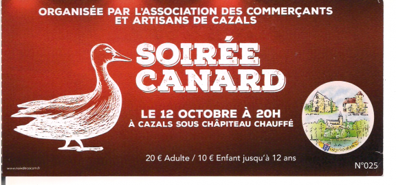 Soirée Canard de l’ACA de CAZALS Publié le samedi, 5 octobre 2019samedi, 5 octobre 2019 par Cercle d automne Inscription au : 06 68 93 54 01