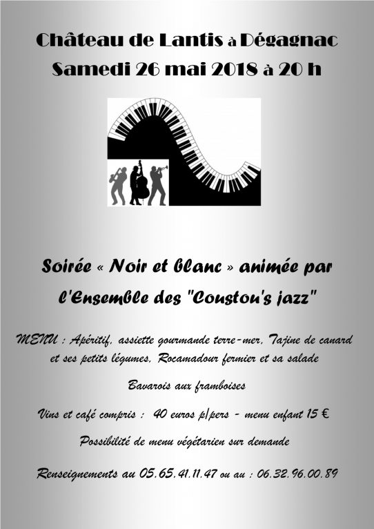 Le Château de Lantis à Dégagnac organise une soirée jazz  » black and white  » le samedi 26 mai à 20 heures .